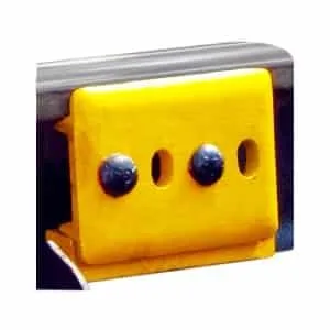 Este dispositivo se utiliza en la intersección donde las agujas permiten a los trenes cambiar de una vía a otra, protegiendo la punta de la aguja (parte más crítica y vulnerable) de daños y desgaste excesivo. La “pastilla” se refiere a una pieza específica o componente del protector que se coloca en el área crítica para proporcionar esta protección.